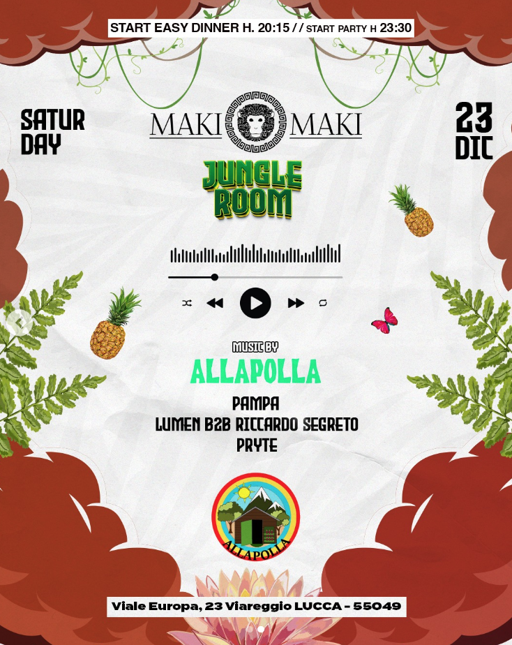 maki maki Viale Europa, 23, 55049 Viareggio LU, Viareggio, Viareggio, ItaliaDOMENICA 10 DICEMBRE Vieni a rivivere la magia degli anni '90 e non solo nella discoteca viareggina Maki Maki! 🎶 Unisciti a noi per una serata indimenticabile dedicata alla musica degli anni '90, '80 e '70. Preparati a ballare al ritmo dei vinili selezionati con cura, che suoneranno per tutta la notte, dalle 17:00 alle...